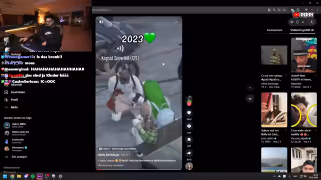01:27:22Nach einem angeblich abgestürzten Stream gerät der Streamer in eine polizeiliche Maßnahme. Eine Dame namens Ella beschuldigt ihn, sie unter ihrem Rock angefasst und ihr primäres Geschlechtsorgan berührt zu haben. Der Vorwurf der sexuellen Belästigung steht im Raum. Der Streamer bestreitet die Anschuldigungen und gibt an, sie retten zu wollen, nachdem ihre Kleidung Feuer gefangen habe. Anschließend sollen Duft- und Kostproben zur Überprüfung der Vorwürfe genommen werden.