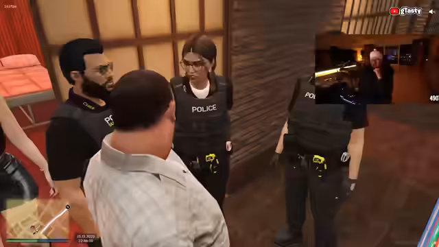 06:31:22Nach einer Verfolgungsjagd kommt es zu einer weiteren Konfrontation mit den Behörden. Ein Charakter wird beschuldigt, ein gestohlenes Fahrzeug zu führen, und es entsteht eine hitzige Diskussion um Kennzeichen und Besitzverhältnisse. Mehrere Personen werden festgenommen, während Vorwürfe wegen Entführung und Waffenbesitzes laut werden. Die Szene endet mit der Überstellung der Verdächtigen und abschließenden Polizeiarksprachen.