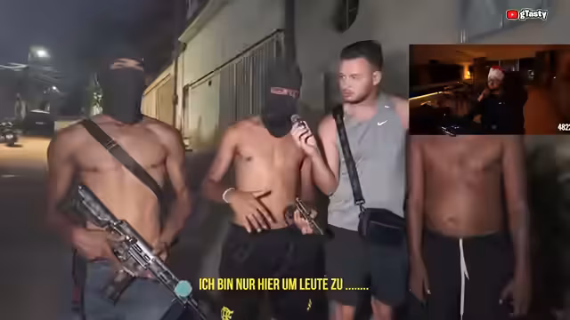 00:58:18In der Vila Kennedy-Favela wurde unter extremer Spannung gefilmt, da ständig mit bewaffneten Auseinandersetzungen zwischen Gangs und Polizei zu rechnen war. Der Streamer wurde von Motorradgangs durch Checkpoints mit Maschinengewehren begleitet und in Gebiete geführt, die selbst für Einheimische hochriskant sind. Interviews mit Gangmitgliedern enthüllten ein komplexes System: Einarmige Veteranen erzählten von Granatenunfällen, andere erklärten Aufgaben wie Leibwache oder Auftragsmord. Besonders surreal wirkte ein Gangster mit 'Waffenskin' – modifizierter Waffe –, was den Kontrast zwischen Gewaltrealität und Spielästhetik unterstrich. Die Dorfbewohner zahlen angeblich nur Miete, während Wasser/Strom von den Gangs kontrolliert werden.