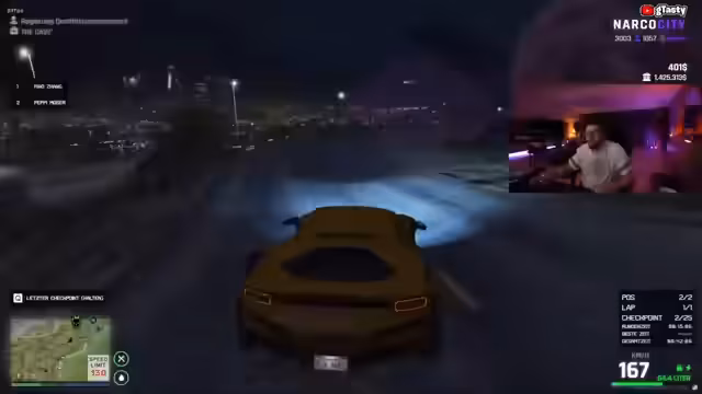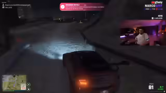 07:17:36Ein Teilnehmer namens Japaner möchte unbedingt gegen den Streamer ein Rennen fahren und wettet dabei um hohe Geldbeträge. Es gibt Verwirrung über die zu fahrenden Autos und ein Teilnehmer verschwindet unerwartet. Nachdem das Auto des Japaners gefunden wird, startet das Rennen mit hohem Einsatz und Windschatten-Regel. Nach dem Rennen gibt es eine Diskussion über den Gewinner und den Einsatz.