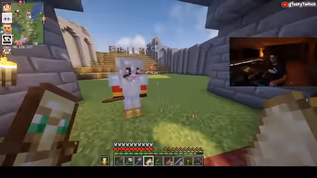02:25:40Nach der politischen Debatte konzentriert sich der Stream wieder auf das Gameplay. Es geht um die Verzauberung von Rüstungsteilen und die Farmung von Erfahrungspunkten. G-Tasty sucht nach einer passenden Stelle für eine XP-Farm, da seine derzeitige Farm nicht ausreicht. Parallel wird über den Bauplan für das Rathaus gesprochen und wer für den Innenaufbau verantwortlich ist, um die Basis des Kaiserreichs weiter auszubauen.