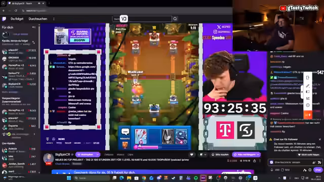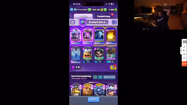 00:20:48Der Streamer wechselt zu dem Spiel Clash Royale und zeigt sein aktuelles Deck, wobei er offen über seine bisherigen Leistungen spricht. Er gibt an, 2000 Euro in das Spiel investiert zu haben und sucht nach Verbesserungsvorschlägen vom Chat. Während des Spielens interagiert er intensiv mit den Zuschauern und zeigt sich frustriert von seinen eigenen Fehlern, die er als Vorführeffekt bezeichnet und sich bessernde Absichten für zukünftige Runden kündigt.