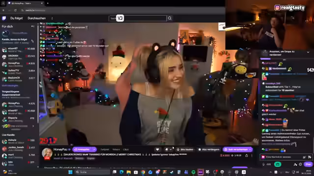 03:09:42Ein Zuschauer fragt nach den persönlichen Zielen der Streamer für das Jahr 2026. Honnipoo wünscht sich mehr Balance im Leben, eine gesündere Ernährung und mehr Fitness. Sie erwähnt auch, dass sie Menschen, die sie nicht schnell vertraut, aus ihrem Leben eliminiert. G-Tasty stellt für sich das ehrgeizige Ziel, sich bis zum Sommer 2026 in Topform zu trainieren und wie der Schauspieler Jean-Claude Van Damme auszusehen. Er plant, dies durch eine intensive Trainingsphase von drei bis vier Monaten zu erreichen und zeigt Bilder aus einem früheren Fitnesszustand, um seine Absicht zu bekräftigen.