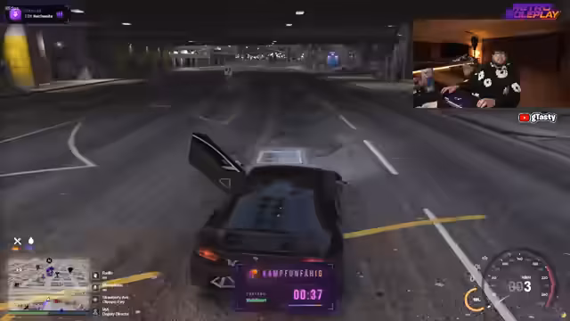 04:11:53Der Streamer ist in eine entführungssimilarische Situation verwickelt, die aber als Roleplay dargestellt wird. Er befindet sich im Gespräch mit den vermeintlichen Kidnappern, die offenbar eine Sperrzone eingerichtet haben. Der Streamer kommuniziert mit ihnen und gibt an, Johannes und die Mädels hätten Bescheid gewusst. Auch ein Mediziner ist unterwegs. Er äußert sich leicht genervt, findet das Ganze aber auch lustig und erwähnt, dass er aufhören müsse, Filme gegen Familien zu machen.