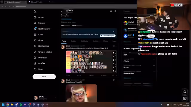 00:25:12Es wird ein scheinbarer 'Arc' zwischen den Streamern G-Tasty und Honeypoo thematisiert. Nachdem G-Tasty vorübergehend gebannt war, werden die Gerüchte über ein Zusammentreffen und eine mögliche Romanze neu entfacht. Der Streamer betont, dass es sich nur um eine rein freundschaftliche Beziehung handle und das Thema hiermit beendet sei, während er gleichzeitig die rein optische Bewertung von Personen anspricht.