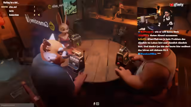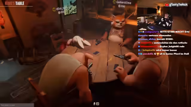 06:58:44Das Spiel eskaliert durch wiederholte Bluffs und gegenseitige Anschuldigungen. G-Time wird ertappt, als er behauptet, nur Damen zu haben, aber einen König legt. Trotzdem überlebt er durch einen glitch im Spiel. Eine Allianz zwischen Kroko und G-Tasty wird vorgeschlagen, um Eli zu eliminieren, was jedoch schnell zerbricht. Die Runden werden emotional aufgeladen, mit viel Scherz und Provokation.