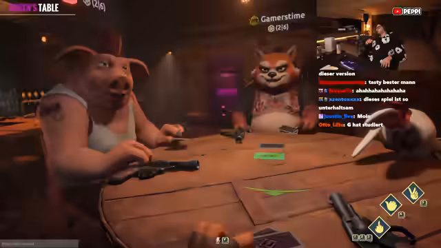06:37:17Der Streamer lädt seine Gäste ein, gemeinsam das Spiel 'Liar's Bar' zu spielen, ähnlich wie 'Among Us'. Er erklärt, dass es bei dem Spiel um Lug und Betrug geht und man niemandem trauen darf. Während der Vorbereitung auf das Spiel wird noch einmal die Frage nach der Stream-Qualität aufgeworfen, und der Streamer bittet um Feedback von seinen Gästen, um den Unterschied zwischen 1080p und 2K zu demonstrieren.