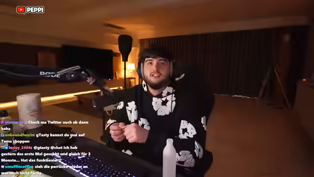 00:04:07Der Stream beginnt mit der Begrüßung der Zuschauer. Die ursprüngliche Planung, sich abzuschminken, wird jedoch durch ein unvorhergesehenes Ereignis unterbrochen: eine offene Flasche mit Aceton entleert sich im Raum, was zu einer starken Geruchsbelästigung führt. Der Streamer muss diese Situation erst bewältigen, bevor der reguläre Stream fortgesetzt werden kann.