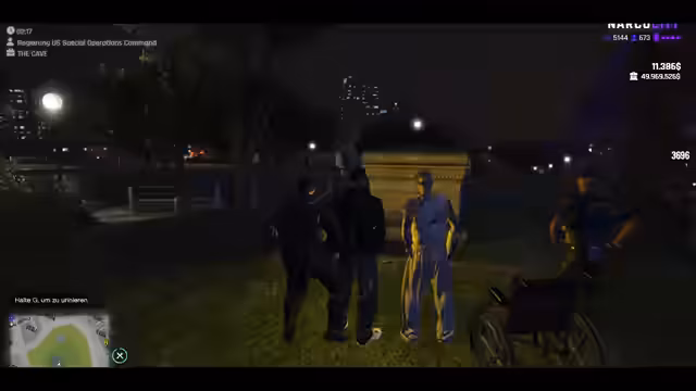 00:03:19Es kommt zu einem weiteren Anruf von 'Aziz'. Der Streamer gesteht, dass er den Kontakt von 'Aziz' in 'Tasty Marquez' umgespeichert und ihn fälschlicherweise an 'Santana' geschickt hat, da dieser nach der Nummer von Marquez gefragt hatte. Die Folgen dieses Versehen sind unklar, aber es führt zu einer leichten Panik bei den Beteiligten und ist ein Beispiel für die skurrilen Intrigen innerhalb der Stream-Narration.
