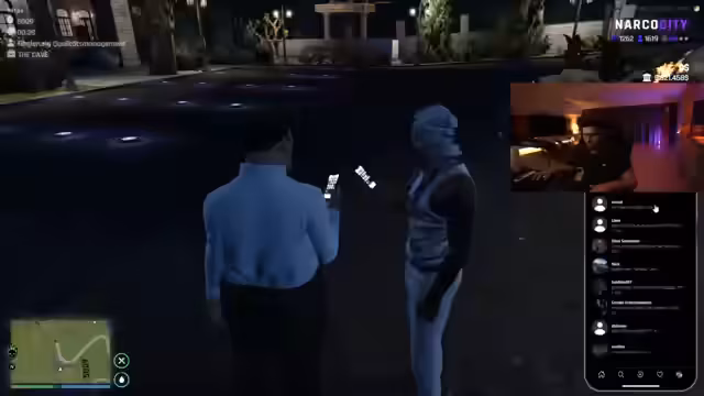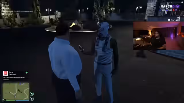 05:35:38Der Stream beginnt mit der Fahrt zur Bank, um Geld für einen Deal einzuzahlen. Bei Ankunft am Zielort, einer Tankstelle, werden vermeintliche Mitglieder der Notangas-Familie konfrontiert. Der Streamer beschuldigt sie, ihn auf seiner Route gestoppt und angegriffen zu haben, und kündigt den Untergang der Familie an. Er behauptet, ihre Route angezündet zu haben und nimmt einen vermeintlichen Anführer gefangen, um ihn zu verhören und zu demütigen.