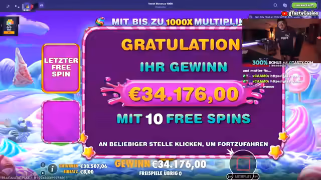 01:34:47Ein Höhepunkt des Streams ist ein sehr erfolgreiches Bonusspiel, das den Streamer sichtlich aufregt. Er beschreibt die steigenden Gewinnmultiplikatoren und die daraus resultierende Aufregung mit körperlichen Bemerkungen wie 'Kribbeln in den Eiern'. Während der Freispiele ruft er regelmäßig zu den Aktionen 'Raise your arm!' auf, um die Spannung zu erhöhen und die Zuschauer einzubeziehen. Der Erfolg dieses Spins führt zu einem deutlichen Plus auf dem Konto, das der Streamer als beweisend für seine 'unternehmerische Herangehensweise' darstellt und mit dem Gefühl, 'Junkie' zu sein, kontrastiert.