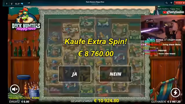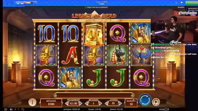00:43:15In einem harten Wettbewerb um den 'Multiplikator' des Streams geht der Streamer in das Spiel 'Wolf Gold' ein. Er erklärt, dass man für die Freispiele sechsmal das Scatter-Symbol (Mond) auf den Walzen 1, 3 und 5 benötigt. Mit einer Mischung aus Hoffnung und Verzweiflung investiert er höhere Einsätze, um die lukrativen Freispiele auszulösen und einen großen Multiplikator zu landen, während er seine Zuschauer aktiv mitnimmt und um ihren 'Sweat' bittet.