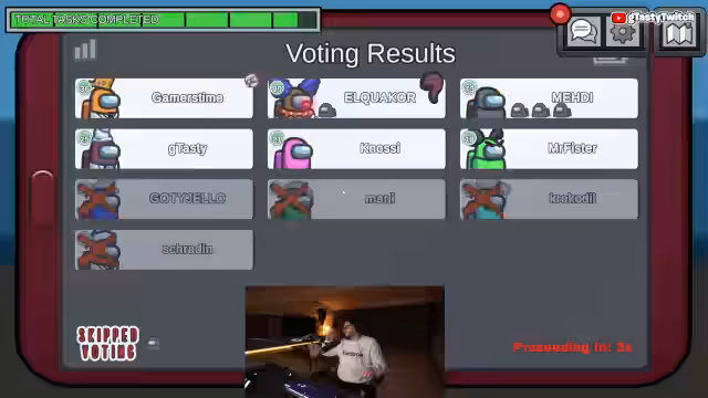 03:50:01Es sind offensichtlich Spannungen im Team entstanden, da sich die Spieler mehrmals hintereinander in der Rolle des Imposters wiedergefunden haben, was als extrem unglücklich und zufällig empfunden wird. Ein Spieler, Schradin, verlässt sogar das Spiel. Gleichzeitig gibt es technische Unannehmlichkeiten wie ein lautes Geräusch im Hintergrund und Missverständnisse bei der Verifizierung von Alibis, was die Spielsituation weiter erschwert.