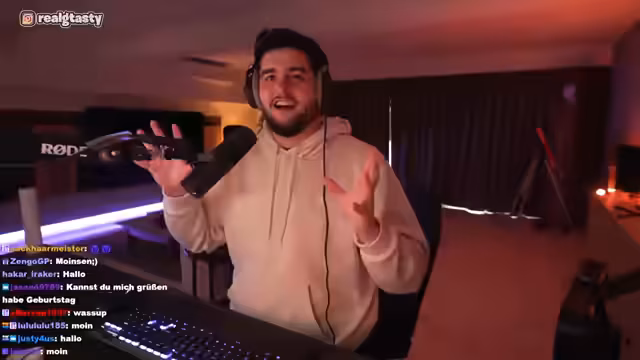 01:31:27Der Streamer teilt mit, dass er massiven Hunger hat und bestellt sich Hähnchen mit Reis und einen Ingwer-Shot. Er unterhält sich über seine Essgewohnheiten und seine Vorliebe für österreichische und türkische Küche, insbesondere Käsespätzle und Döner. Gleichzeitig werden sehr persönliche und provokante Fragen im Chat gestellt, die sich auf sein Sexualleben beziehen. Der Streamer schlägt diese Fragen mit einem Augenzwinkern ab und weist darauf hin, dass solche Themen privat bleiben sollten.