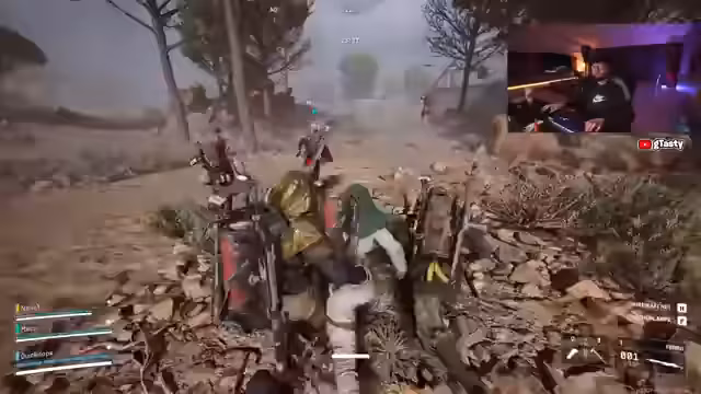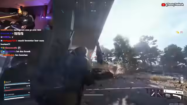 05:19:32Die Community formiert sich und startet den Angriff auf den Matriarchen. Nach anfänglicher Koordination entsteht Chaos, der Streamer wird gekillt, es gibt Verrat durch einen unbekannten Gegner und heftige Kämpfe um den Siegesloot. Am Ende ist der Streamer frustriert, weil er trotz des Siegs wenig Belohnung erhält.