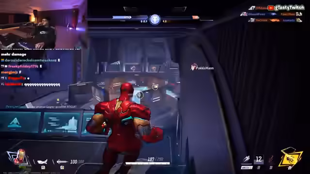 07:55:00Der Streamer probiert verschiedene Charaktere wie Iron Man und Deadpool aus, analysiert deren Stärken und Schwächen. Dabei werden technische Aspekte wie Schaden mit Fähigkeiten (z. B. Raketen) und Heilung besprochen. Es kommt zu spannenden Momenten mit Zerstörung von Kartenobjekten und Kämpfen gegen Gegner. Die Herausforderung, schnell zu reagieren und Fähigkeiten zu koordinieren, wird betont. Gleichzeitig wird über externe Themen wie Einnahmen und Social-Media-Strategien informell gesprochen.