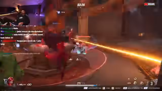 04:18:48Während eines Gefechts kommt es zu hektischen Momenten und gegenseitigen Beschuldigungen. Ein Spieler wird lautstark als 'Deutscher' und später als 'Franzose' bezeichnet, was zu rassistischen Äußerungen führt. Der Streamer versucht, den Konflikt zu deeskalieren, indem er aus dem Englischen ins Deutsche und Portugiesische wechselt und mehrfach betont, dass der Spieler aus Portugal kommt. Die Situation spitzt sich zu, als ein Spieler den anderen auffordert, 'suck my dick', und der Streamer die Kriegssituation als 'Stella Montes' bezeichnet, einen Ort des 'Grauens'.