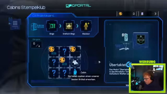 08:42:45Der Streamer entdeckt die erweiterten Funktionen des Schutzraums, einschließlich des Kevins Stempel Clubs, wo er Münzen gegen Belohnungen eintauschen kann. Er erfährt mehr über die Luna-Filament-Technologie, die für die Replikation von Objekten im Spiel dient. Zudem kann er sich mit Modulen ausrüsten, die seine Fähigkeiten im Kampf verbessern.