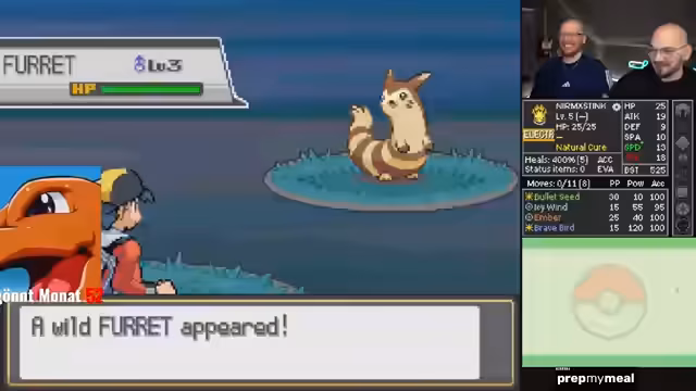 00:11:01Zu Beginn konzentriert sich der Streamer auf das Finden von Items und das Einführen des grundlegenden Gameplay. Er erhält das erste Pokémon, einen Blitzer, dessen Movesets jedoch, wie später festgestellt wird, unbrauchbar sind, da es über zu wenig Angriffsstärken für seine guten Moves wie Flammenwurf besitzt. Trotzdem beginnt der erste Kampf gegen einen Trainer, der auf Level 8 ist. Der Kampf wird knapp gewonnen, was die enorme Zufallsabhängigkeit und die beginnende Frustration des Modus unterstreicht. Parallel dazu wird der Weg durch die Spielwelt beschrieben, wobei Items wie "Bärenband" und "Meisterband" gefunden werden, die im Spielverlauf aber keine direkte Wirkung haben.