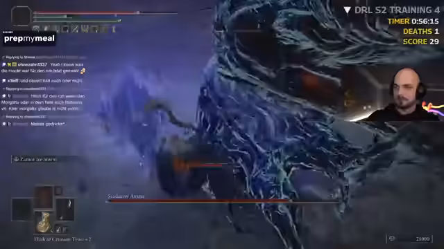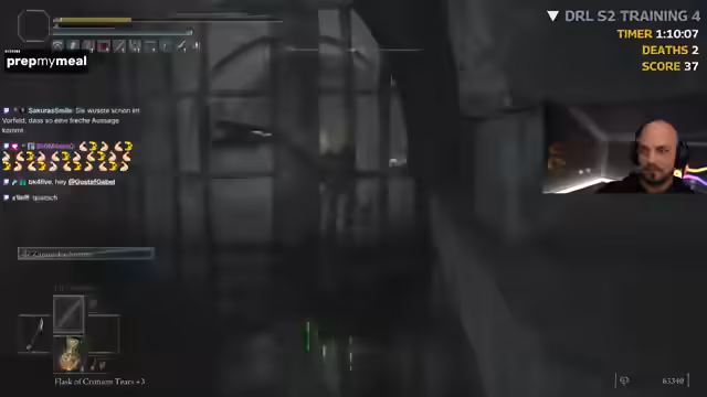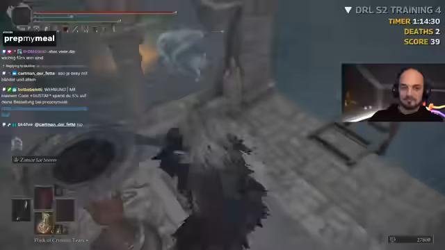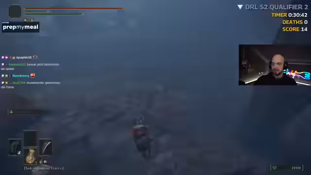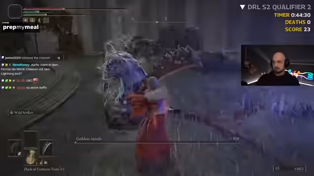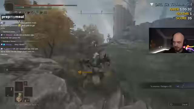04:12:50Der Streamer beginnt den Stream in der Nachsmaragd-Höhle und vergleicht den aktuellen Kaizo-Run mit anderen Elden Ring Challenges. Er hebt hervor, dass dieser Run im Gegensatz zu anderen wie Rundokus oder Gravecrips stark routenorientiert ist und weniger von den statischen Startgebieten abhängt. Die Kämpfe werden als weniger anspruchsvoll beschrieben, da das Hauptziel die reine Geschwindigkeit ist, anstatt strategisches Ackern in schwierigen Gebieten. Schwierigkeit wird hier nicht durch die Bosskämpfe, sondern durch die Laufrouten bestimmt.