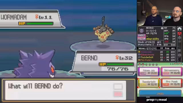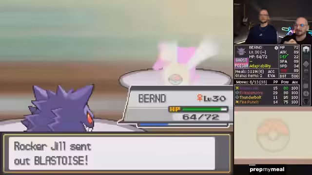 00:29:38Nachdem der Blitzer als Hauptpokemon aufgegeben wird, wird ein wildes Pokémon, ein Lickilicky, gefangen, das sich im Vergleich als deutlich überlegen erweist. Das neue Pokémon hat ein starkes Moveset mit Moves wie Poison Jab und Fire Punch. Die Strategie verschiebt sich nun stark auf dieses neue Teammitglied. Im Pokémon Center wird das Lickilicky gepflegt, während der Plan gefasst wird, durch die Kämpfe gegen Trainerpokemon weiterzuleveln. Der Streamer erkundet auch die Umgebung, um Items zu finden und den Weg zur nächsten Arena fortzusetzen.