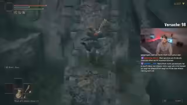 05:21:46Der Streamer gerät in mehrere gefährliche Situationen, in denen der Tod nur knapp vermieden wird. Besonders hervorzuheben ist ein Moment, in dem ein plötzlicher Angriff zu einem sofortigen Tod hätte führen können. Der Streamer zeigt Erleichterung über überstandene Hindernisse und reflektiert über die hohe Schwierigkeit des No-Hits-Modus. Trotz der Anstrengung bleibt der Fokus darauf, die Challenge erfolgreich abzuschließen.