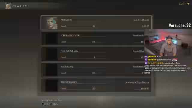 00:07:04Der Stream beginnt mit Gustav F., der seinen Stream um 14 Uhr an jedem Montag und Freitag ankündigt. Er erwähnt, dass er bereits einige Stunden ins Spiel investiert hat und frustriert ist, weil er im Spiel schlecht performt. Er diskutiert mit dem Chat über die Schwierigkeiten des Spiels, insbesondere den Bossnamen AllBossesNoDeath Randomizer +0 Waffen vpn, und teilt mit, dass sie bereits acht Stunden brauchen, um den ersten Boss zu besiegen.