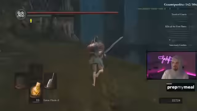 01:52:12Es wird überlegt, ob man plus 15 vor Sen's Fortress erreichen kann, aber es fehlen die Items dafür. Es wird beschlossen, auf Nummer sicher zu gehen und Queelag zu besiegen. Es wird gehofft, dass der Schaden gut ist. Nach dem Sieg über Queelag wird Ceaseless Discharge gemacht, um weitere Punkte zu erhalten. Die zweite Glocke wird geläutet. Es wird erwähnt, dass man Mythic of Gaming zugeschaut hat, der einfach irgendwo runtergesprungen ist. Es wird aus Versehen Nein gedrückt, was dazu führt, dass kleine Viecher rauskommen. Der Streamer hasst diese Viecher. Es wird aus Versehen das Bonfire aktiviert, wodurch man sich nicht zurückteleportieren kann. Es wird erwähnt, dass der Streamer noch nie Bleithorn hochgegangen ist. Es wird die Angst vor dem Wasserrad thematisiert. Es wird eine Taktik für Ceaseless Discharge entwickelt und angewendet. Ceaseless Discharge wird besiegt und weitere Punkte werden erhalten. Es wird erwähnt, dass es im echten Run kacke ist, etwas zu machen, was man noch nie gemacht hat. Der Streamer ist nicht so gut vorbereitet, aber er muss damit leben. Es wird überlegt, wie man jetzt weiter vorgehen soll. Es wird beschlossen, New Londo erst zu machen, wenn genug Upgrade-Materialien vorhanden sind. Es wird überlegt, ob man Butterfly oder Hydra machen soll. Es wird beschlossen, zuerst Stray Demon zurück zu machen, um den Ring anlegen zu können, um sich im Wasser bewegen zu können.