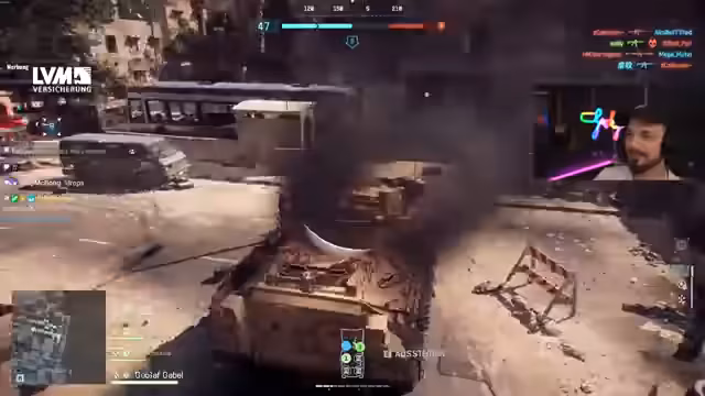 01:52:08Die Runde entwickelt sich zu einem wahren Chaos, als in einem eigentlich kleinen Squad Deathmatch ein Panzer erscheint. Dies führt zu massiven unbalancierten Gameplay, bei dem der Gegner einen erheblichen Vorteil hat. Die Map bricht teilweise ein, und der Streamer fühlt sich machtlos, da seine Standardwaffen den Panzer nicht effektiv bekämpfen können können. Er kritisiert stark die Map und die Lobby als 'Sweat Map', in der überdurchschnittlich gute Spieler dominieren, was den Spaß am Spielen stark trübt.