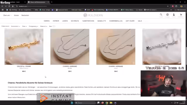 03:03:33Unterbrechung des Gameplay zur Promotion des Partner-Shops 'Holzkabel'. Der Streamer stellt Uhren, Ketten und Armbänder aus Holz und Stein als Geschenke vor, die als einzigartige Unikate beworben werden. Er empfiehlt den Shop insbesondere als Geschenk für Liebste oder zur Selbstbelohnung und betont die Individualität jedes Stücks. Die Partnerschaft mit dem Shop wird als Möglichkeit für Zuschauer dargestellt, ihn über einen Link mit 15% Rabatt zu unterstützen, während er die Produkte persönlich vorstellt.