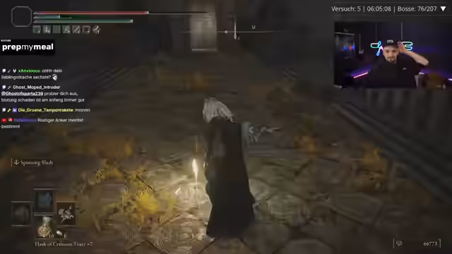 04:44:01Der Streamer interagiert intensiv mit der Community, indem er auf Kommentare und Spenden eingeht. Er spricht über die Freude an Elden Ring und seine Vorfreude auf kommende Titel wie Crimson Desert und den Resident Evil Marathon. Ein Chatmitglied, Anxious, der nach 17 Monaten zurückgekehrt ist, wird besonders gewürdigt. Gleichzeitig wird über die Preisentwicklung bei PCs und Komponenten gesprochen und die Community nach Erfahrungen befragt.