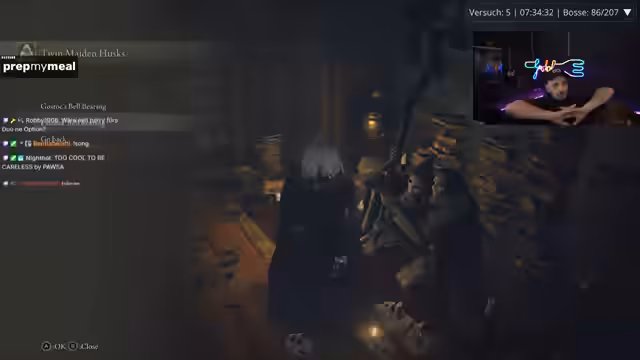 05:23:19Der Streamer äußert seine Sorge über die hohe Stärke der DLC-Gegner, insbesondere eines vogelähnlichen Bosses. Es werden Vorkehrungen für die kommenden Kämpfe getroffen, inklusive der Planung von Morgots großer Rune für mehr Lebenspunkte. Eine Partnerschaft oder Kooperation mit Chad erwähnt, die Planung für morgen wird angesprochen, wobei unklar ist, ob und wie Prep bereits übermittelt wurde. Die zukünftigen Gegner Sanisax und das Crucible Night Duo werden als besonders gefährlich eingestuft.