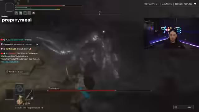 04:00:39Der Streamer kämpft gegen Malikav und stößt auf erhebliche Schwierigkeiten. Eine zentrale Taktik ist, in Phase 1 nicht die Haltung zu brechen, um idealerweise in Phase 2 einzusteigen und ihm sofort die Haltung zu nehmen. Die empfohlene Vorgehensweise ist, mit drei geladenen R2-Angriffen kurz vor dem Eintritt in Phase 2 die Haltung zu brechen oder in Phase 2 zu locken, da dieser Boss wenig Leben hat. Der Streamer stellt fest, dass die Textbeschreibungen im Spiel unzuverlässig sind und überlegt, die Herausforderung mit nur der Waffe zu meistern, was jedoch ein komplett anderes Moveset erfordert.