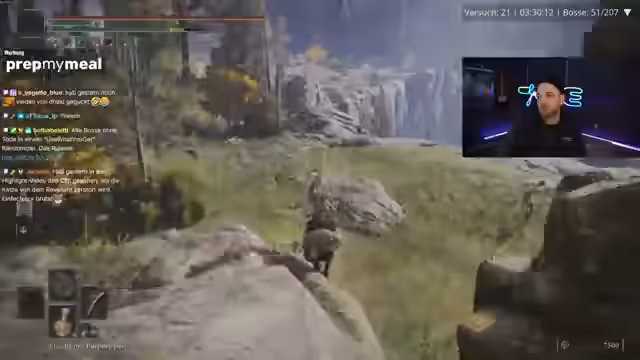 02:57:03Nachdem der Streamer den Speer-Talisman gefunden hat, der den Konter-Schaden, insbesondere bei Stichschaden, verstärkt, begibt er sich nach Ljörn. Trotz noch nicht aufgewerteter Waffe zeigt sich der Gameplay-Stil als äußerst effektiv. Der Streamer kann die Angriffe der Gegner blocken und im Gegenzug kontern, was ihm eine enorme Kontrolle über den Kampf verleiht und ihm sehr viel Spaß bereitet.