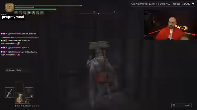 In der anspruchsvollen „AllBnoD +0“-Challenge, bei der alle Bosse ohne zu sterben und ohne Waffenleveln bewältigt werden müssen, konnte ein wichtiger Fortschritt verbucht werden. Nach anfänglichen Rückschlägen und mehreren Todesfällen gelang es, einen schwierigen Boss zu besiegen. Dieser Erfolg zeigt, dass die Challenge trotz hoher Schwierigkeit grundsätzlich machbar ist und motiviert zu weiteren Bemühungen.