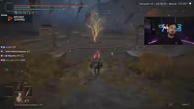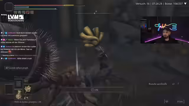 Während eines 'Elden Ring' Streams wurde eine besondere Challenge unternommen. Dabei wurde das Spiel auf Französisch eingestellt, um eine authentische Erfahrung zu schaffen. Der Fokus lag darauf, alle Bosse ohne zu sterben zu besiegen. Nach intensiven Kämpfen gelang es dem Spieler, den finalen Boss zu bezwingen und damit einen persönlichen Rekord aufzustellen.