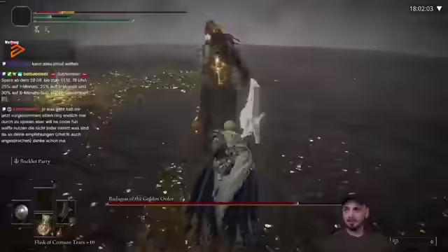 06:02:03Der Streamer äußert seine Frustration über den Kampf und analysiert seine Leistung. Er stellt fest, dass er Royal Knights Resolve nicht richtig einsetzen kann und Schwierigkeiten hat, die Angriffe des Gegners zu parieren. Er hadert mit der zweiten Phase des Kampfes, die er als besonders anstrengend empfindet. Er analysiert die Attacken des Gegners und versucht, die besten Zeitpunkte für Paraden und Ausweichmanöver zu finden. Dabei stellt er fest, dass einige Angriffe schwer vorherzusagen sind und er oft zu spät reagiert. Er experimentiert mit verschiedenen Taktiken, um den Schaden zu maximieren und die Verteidigung zu verbessern. Er hadert mit der Tatsache, dass er oft von Angriffen getroffen wird, die er eigentlich hätte vermeiden können. Er betont, dass es wichtig ist, sich nicht entmutigen zu lassen und weiter zu üben, um die eigenen Fähigkeiten zu verbessern. Er äußert sich frustriert darüber, dass er oft die falschen Tasten drückt oder zur falschen Zeit reagiert, was zu unnötigen Fehlern führt. Trotzdem gibt er nicht auf und versucht, aus jedem Fehler zu lernen und sich zu verbessern. Er merkt an, dass der Kampf gegen das Eldenbiest sehr anspruchsvoll ist, aber auch viel Spaß macht und ihn immer wieder aufs Neue herausfordert. Er spricht über die Schwierigkeit, die richtige Balance zwischen Angriff und Verteidigung zu finden, und betont, dass es wichtig ist, geduldig zu sein und nicht zu überstürzen.