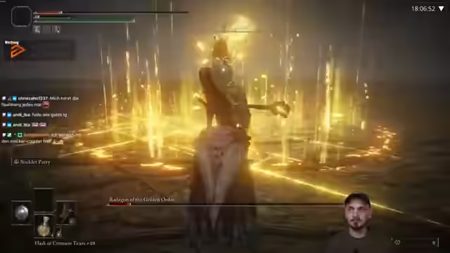 06:25:55Der Streamer überlegt, Royal Knights Resort wegzulassen und hadert mit der Unfairness von Radagon. Er spricht über die Schwierigkeit, die richtigen Attacken des Eldenbiests zu provozieren, und die kurze Dauer seiner Träne, die für den Sieg entscheidend ist. Er erklärt, warum er Royal Knight Resolve nicht immer einsetzt, da er einige Angriffe nicht beherrscht. Der Chat startet eine Wette, ob er den Boss bis 21 Uhr schafft, was ihn zusätzlich motiviert. Er erkennt, dass er Land sieht, aber es noch ein harter Weg ist. Er analysiert seine Fehler und versucht, seine Strategie anzupassen, um effektiver zu sein. Er experimentiert mit verschiedenen Taktiken, um den Schaden zu maximieren und die Verteidigung zu verbessern. Er hadert mit der Tatsache, dass er oft von Angriffen getroffen wird, die er eigentlich hätte vermeiden können. Er betont, dass es wichtig ist, sich nicht entmutigen zu lassen und weiter zu üben, um die eigenen Fähigkeiten zu verbessern. Er äußert sich frustriert darüber, dass er oft die falschen Tasten drückt oder zur falschen Zeit reagiert, was zu unnötigen Fehlern führt. Trotzdem gibt er nicht auf und versucht, aus jedem Fehler zu lernen und sich zu verbessern. Er merkt an, dass der Kampf gegen das Eldenbiest sehr anspruchsvoll ist, aber auch viel Spaß macht und ihn immer wieder aufs Neue herausfordert. Er spricht über die Bedeutung von Glück und Zufall im Kampf und betont, dass man manchmal einfach Pech hat und nichts dagegen tun kann.
