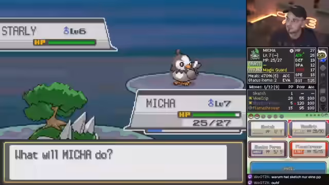 01:24:28Der Streamer hat erst die ersten vier Trainer besiegt und ist erst Level 11, möchte aber Level 19 sein, bevor er die Arena betritt. Es wird überlegt, ob das noch machbar ist. Fire Punch wäre auch eine Option, aber es gibt auch Attacken, die nicht 100% genau sind. Flamethrower wird als bester Angriff im Spiel bezeichnet. Es wird festgestellt, dass die erhaltenen Baby-Pokémon wenig XP bringen. Secret Power wird gegoogelt, um herauszufinden, welche Effekte es hat. Es stellt sich heraus, dass es verschiedene Effekte je nach Umgebung gibt. Detect wird eingesetzt, um zu verhindern, dass der Gegner Sketch einsetzt. Flamethrower räumt alles weg, obwohl der Special Attack Wert niedrig ist. Es wird überlegt, ob die Animationen von Secret Power die tatsächlichen Attacken sind. Extreme Speed wird diskutiert, aber die 5 PP sind ein Problem. Der Streamer will niemanden töten und darf daher Weißgrub nicht einsetzen, da es zu stark ist. Es wird langsam ein guter Angriff gesucht. Aeroblast ist eine Überlegung wert, aber es ist nicht physisch.