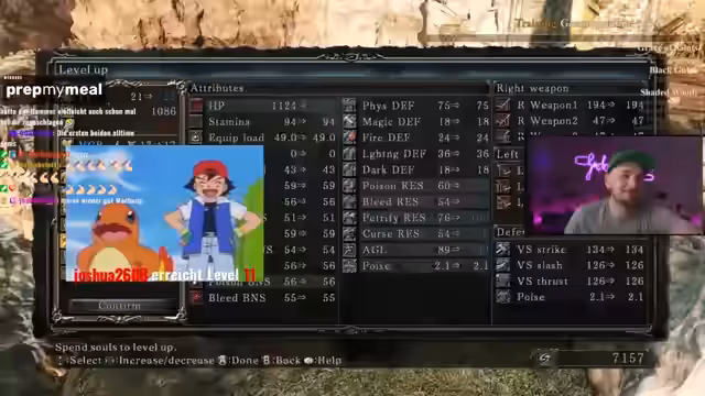 04:38:51Ein zentraler Teil des Streams bestand im Leveln des Charakters, insbesondere der Steigerung der Attribute für Waffenschaden und Beweglichkeit. Das Leveln erwies sich als sehr kostspielig, was zu finanziellen Engpässen führte. Es wurden Waffen aufgewertet und neue Materialien wie ein Bolt Stone besorgt, um die Ausrüstung zu verbessern. Der Fokus lag darauf, eine starke Waffe mit Elektro-Infusion zu versehen, während man gleichzeitig die Ausgaben im Auge behielt.