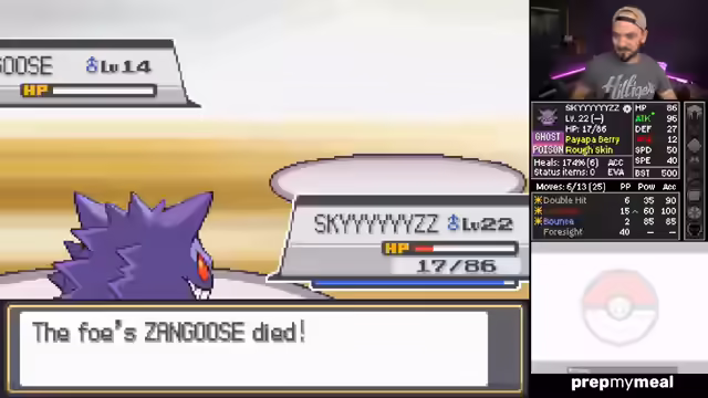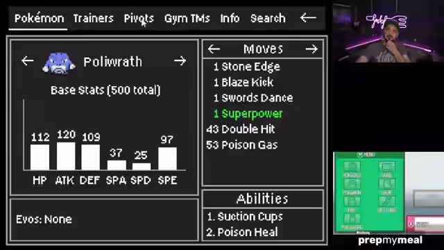 00:12:57Es wird eine Kaizo Ironmon Challenge gespielt, eine Rando-Pokémon-Version mit extrem schweren Regeln. Es darf nur ein Pokémon gleichzeitig benutzt werden, die gegnerischen Pokémon der Trainer sind 50% höher im Level, und es dürfen nur Trainer besiegt werden, um Erfahrungspunkte zu sammeln. Außerhalb von Kämpfen dürfen keine Tränke verwendet werden, und Dungeons dürfen nicht verlassen und wieder betreten werden. Der Streamer erklärt, dass Gino Maschino fast zeitgleich ein Video zur gleichen Waffenklasse hochgeladen hat, was ein großer Zufall war. Die Community fragte nach den Regeln und bekam zur Antwort, dass es so viele sind, dass diese auf einer extra Seite zu finden sind.