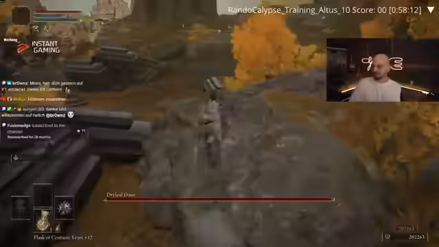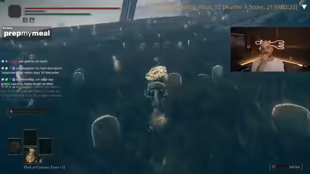 01:52:25Das Rennen beginnt in Leonia Akelet, und der Streamer hat sofort mit erheblichen Problemen zu kämpfen. Die Start-Waffe, ein Dolch, ist als extrem ineffektiv beschrieben, was zu einem langsamen Fortschritt und Frustration führt. Die Performance ist sehr schlecht, was sich in mehreren Toden niederschlägt und die Punktzahl rapide sinkt lässt. Die Anfangsgegner als auch einige Bosse erweisen sich als überraschend schwer, was durch die schlechte Waffe verschärft wird. Das Ziel von 20 Punkten erscheint zunehmend unrealistisch, und der Streamer kämpft damit, mental im Spiel zu bleiben, da der Run frustrierend und stressig verläuft.