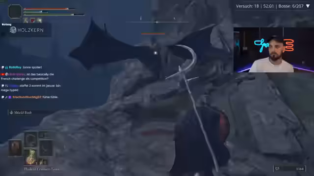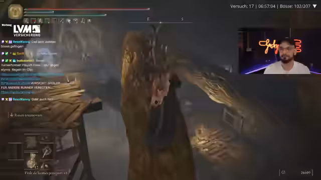 01:49:25Der Streamer sucht gezielt nach besseren Ausrüstungsgegenständen und Waffen, um die Kampfkraft zu erhöhen. Er trifft auf einen schwierigen Boss, den er mit einer neuen Taktik angeht. Dabei kommt es zu kritischen Momenten, die den Fortschritt gefährden. Parallelen zum Spielfortschritt von Ellie werden gezogen, allerdings ohne konkrete Details. Einige Bosse können schnell besiegt werden, während andere wie Radagon große Herausforderungen darstellen. Der Streamer betont die Wichtigkeit, den eigenen Fokus beizubehalten und nicht von unerwarteten Gegnern überrascht zu werden.