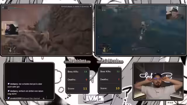 06:25:26Nephistos wagt gefährliche Skips, etwa zu 'Relana', was jedoch mit Lebensverlusten bezahlt wird. Psy konzentriert sich auf effiziente Kills wie bei 'EDM' und nutzt die Umgebung für schnelle Punkte. Der Streamer kritisiert Nephistos' Entscheidung, einen Magma-Worm anzugreifen, da die Waffe zu wenig Schaden macht. Zeitmanagement wird entscheidend, da beide nur 90 Minuten für möglichst viele Kills haben.