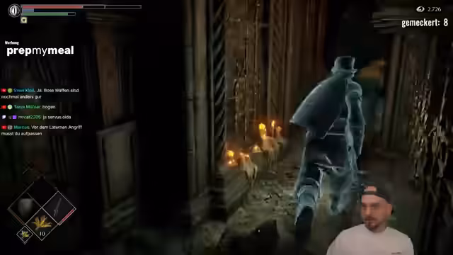 00:09:48Gustav beginnt mit Demon's Souls und kommentiert die Schwierigkeit des Spiels. Er diskutiert über spezifische Gegner und Mechaniken, insbesondere über unfaire Angriffe und die Kamerasteuerung. Der Streamer ärgert sich über die Hitboxen bestimmter Angriffe und beschreibt den Frustrationseffekt des Spiels. Er erwähnt, dass er früher Probleme mit der Steuerung im Vergleich zu Dark Souls hatte, aber den Kampfstil mittlerweile schätzt.