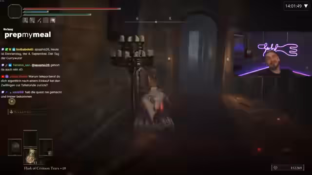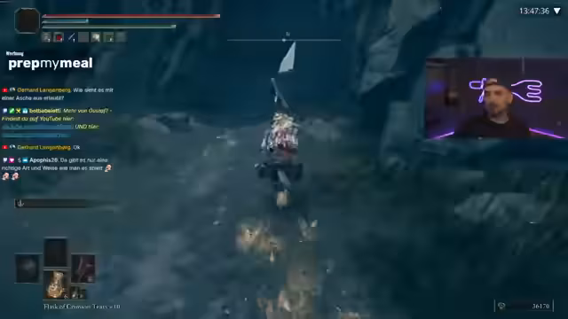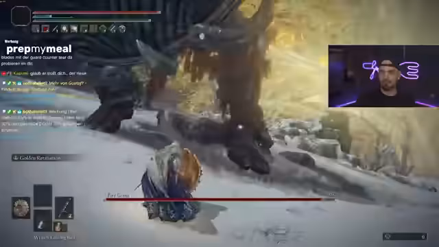 02:46:47Der Streamer beginnt den Kampf gegen Godskin Duo und findet heraus, dass ohne den Einsatz von Schlaf-Aschen die Herausforderung größer ist. Er experimentiert mit verschiedenen Waffen und Talismanen und entscheidet sich für die zweihändige Nutzung der Waffe. Nach einem schwierigen Kampf gelingt es ihm, die Bosse zu besiegen und freut sich über den Erfolg. Der Streamer zeigt die Belohnung und plant, die Waffe weiter aufzuwerten.
