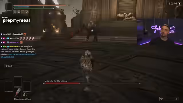 03:15:24Der Streamer stellt sich Malikav, einem besonders schwierigen Boss, heraus. Er muss unterschiedliche Strategien für beide Phasen des Kampfes entwickeln. In der ersten Phase setzt er auf physische Verteidigung, während in der zweiten Phase die Magieabwehr entscheidend wird. Nach zahlreichen Versuchen und Fehlern gelingt es ihm schließlich, Malikav durch konsequentes Parieren und präzises Ausweichen der Angriffe zu besiegen, was seinen Fähigkeiten im Umgang mit dem System als Beweis dient.