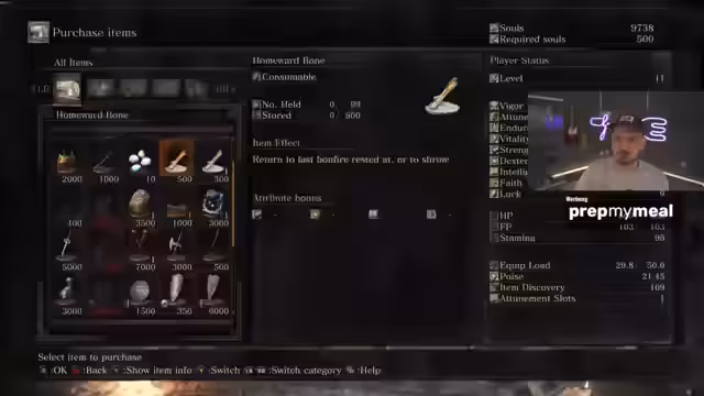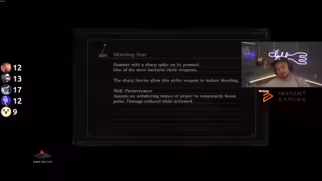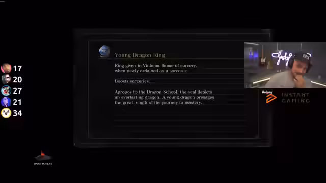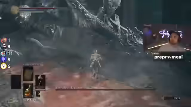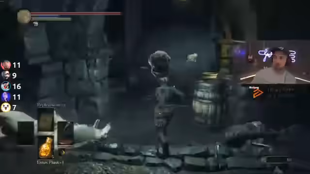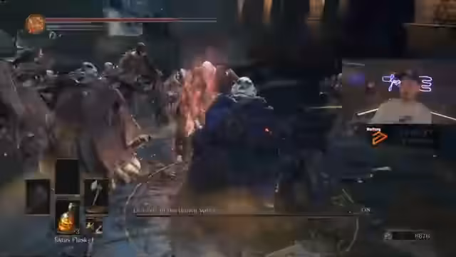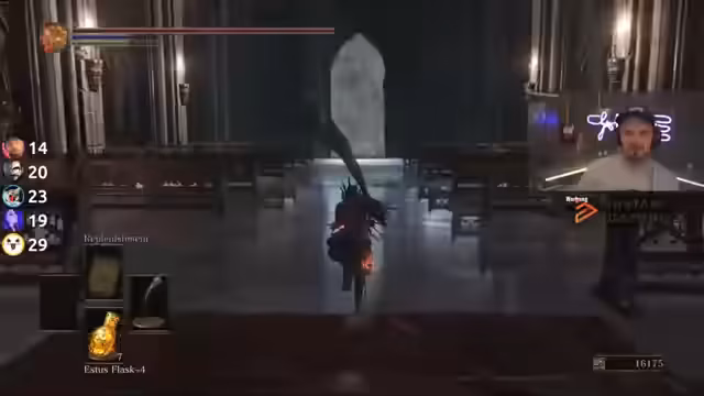 00:22:37Der Streamer bereitet sich auf einen No-Death Randomizer-Race in Dark Souls 3 um 17 Uhr vor, an dem auch Lord Pappnase und Divi teilnehmen. Er wählt eine Axt als Waffe aus, welche er aufgrund ihrer "micro-stagger"-Fähigkeit gerne verwendet, und beginnt mit der Vorbereitung im Hochgewölbe von Lothric. Sein Ziel ist es, sich an das Spiel zu gewöhnen und wichtige Items wie Titanitscherben zu sammeln.