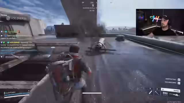 03:16:38Der Streamer ist aktiv im PvP-Modus unterwegs und beschreibt seine Vorgehensweise als 'Sniper'. Er tauscht sich mit dem Chat über Spielstrategien aus, ist aber unzufrieden mit der Präzision seiner Waffe. Bei einem Feuergefecht eliminiert er mehrere Gegner, äußert aber auch Frustration darüber, dass Spieler sich gegenseitig eliminieren, bevor er looten kann. In einem anderen Duell erleidet er eine Niederlage, kommentiert dies aber als 'wundervoll' und 'spaßhaft'.