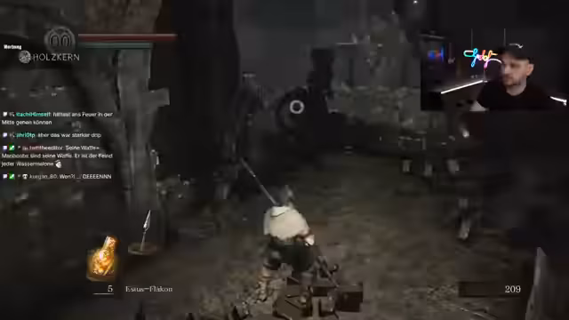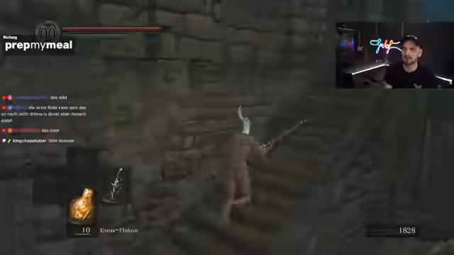 00:10:56Nach den anfänglichen Problemen startet der Streamer in Dark Souls 3 Godrun Randomizer. Er erhält zunächst das Schwert von Gale, eine Waffe, die ihm sehr gefällt und die er zweihändig verwenden kann. Es zeigt sich schnell, dass die Waffe stark ist, aber auch halb zerstört. Im Laufe des Spiels entdeckt der Streamer wichtige Gegenstände wie einen Feuerbomben-Händler und erhält eine beträchtliche Menge an Gold, was ihm mehr Flexibilität im Spiel verschafft. Zudem wird ein Boss auf der ersten Seite bekämpft.